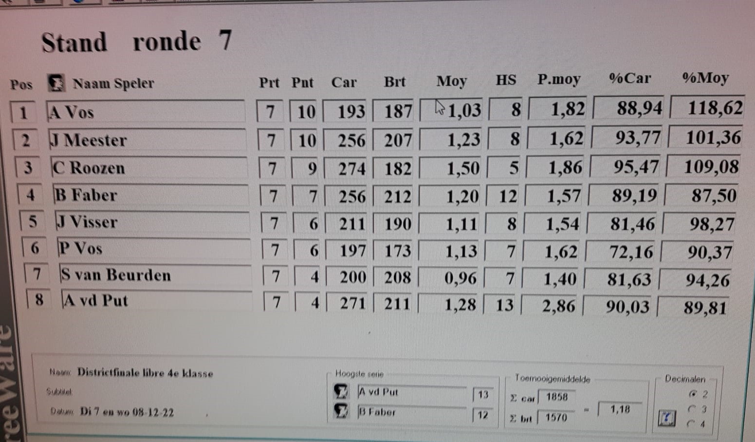 PK Voorwedstrijden Driebanden Klein 3e Klasse - Dag 1